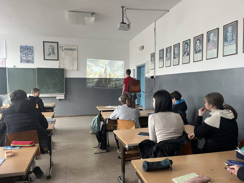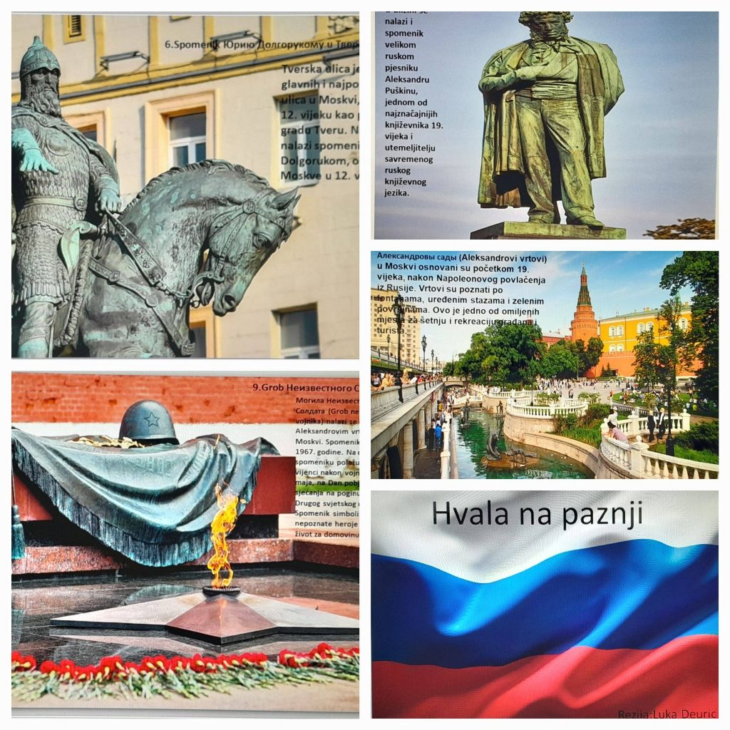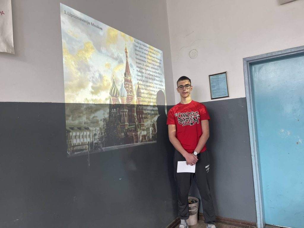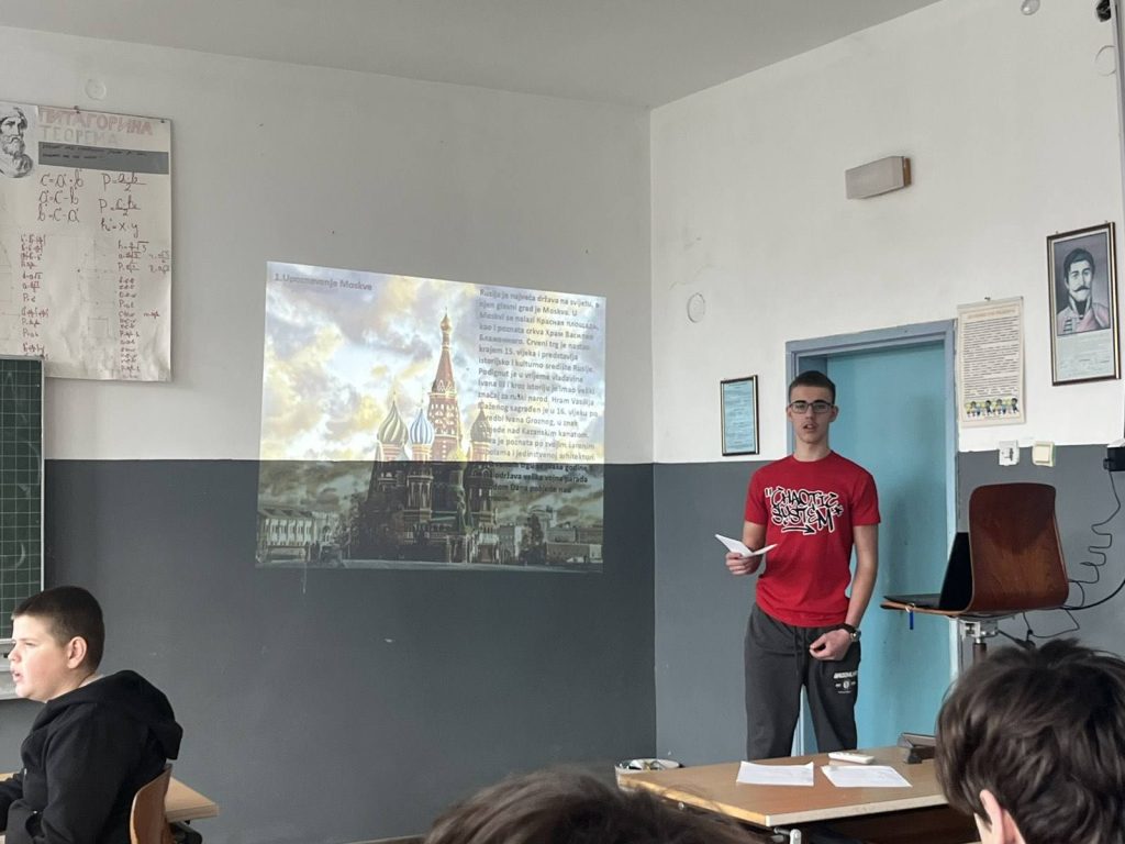 Ученици IX разреда су кроз пажљиво припремљену презентацију реализовану уз помоћ пројектора, кренули на занимљиво путовање кроз историју и културно насљеђе Москве. Час је осмишљен као спој учења и истраживања, те је ученицима приближио најважније историјске догађаје и препознатљиве симболе главног града Русије. Кроз овај вид рада ученици су развили интересовање за руску културу, традицију и историју, обогатили свој вокабулар на руском језику и унапредили језичке вештине. Савремени начин излагања подстакао је радозналост, активност и жељу за даљим учењем, чинећи наставу садржајнијом, динамичнијом и занимљивом. Презентацију радио Лука Деурић IX-1