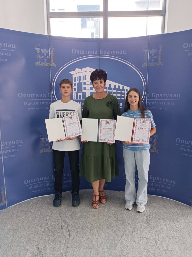 Поносни смо што су међу награђеним и два ученика наше школе. Наиме, Лејла Смаиловић је добила Повељу Општине Братунац за најбољег спортисту, док је Јакша Петрић добио Захвалницу за постигнуте изузетне спортске резултате.